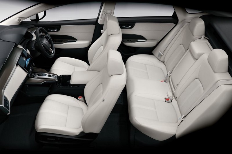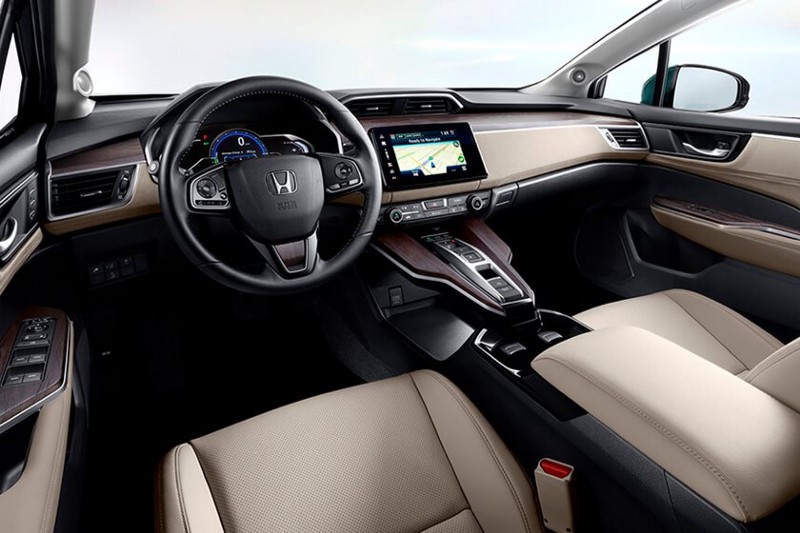 Honda has endowed the Clarity with standard car-like dimensions and design features like LED headlight clusters. The front end features unique J-shaped LED DRL clusters on the outboard edges of the front bumper while the wheels are low-drag 18-inch alloys. The B- and C-pillars are blacked out for a floating roof effect, the lower bumper and side-sills are blacked out, while a rear lower brake-duct also boasts blacked-out surrounds. Over the rear wheel, the arch covers the top of the rear wheels for aerodynamic purposes. Around back, the LED taillights feature clear lenses.