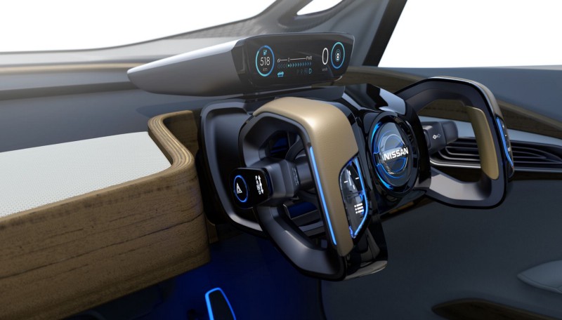 The four-seat cabin is more spacious in autonomous mode, as the steering wheel retracts into the dash, with a flat screen display emerging. Occupants can control various functions using different gestures, while the seats all slightly rotate inwards to create what Nissan calls a living room atmosphere.