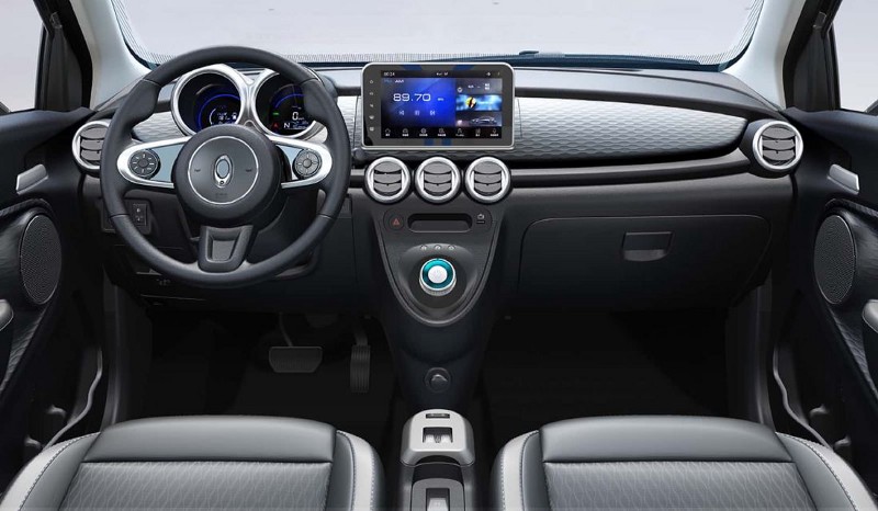 The interior is mainly covered by black and silver and designed to gratify younger consumers. The interior boasts a cute styling which is characterized by lots of round elements, such as dual dashboard, air conditioner vents, three-spoke steering wheel and gearshift. A large-sized floating center console display generates a futuristic sense, while is still in tune with the overall retro style.