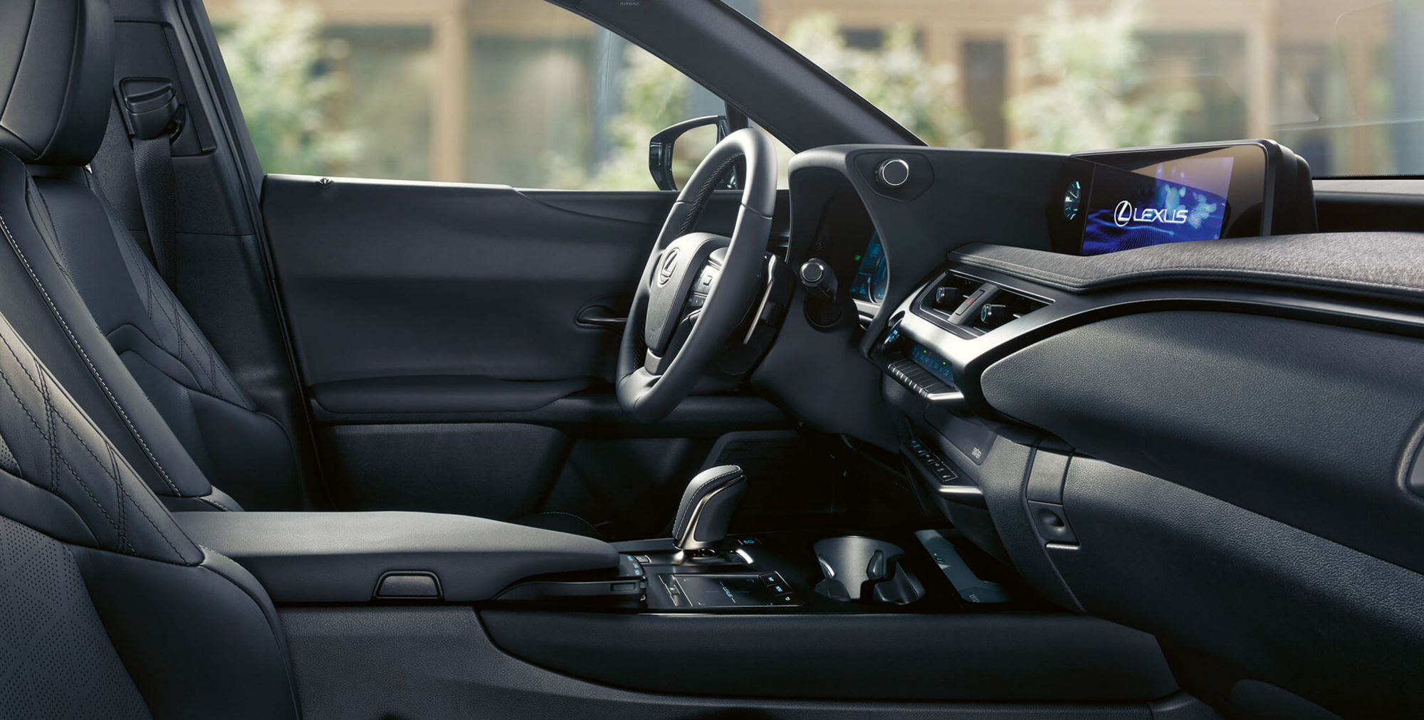 The new UX 300e features a cabin inspired by the Japanese architectural concept of ‘engawa’ where the inside and outside are seamlessly connected. This unique approach gives you a better sense of the extremities of this new EV, making it much easier to maneuver in tight urban spaces. The cockpit is relaxing and uncluttered, with everything of importance located around you, and all the controls falling naturally to hand (there’s even a clever palm rest on the center console that has the audio controls built in).