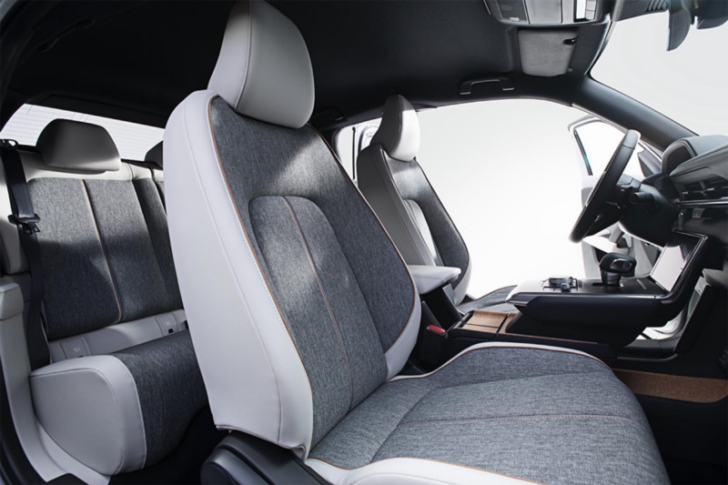 The interior materials Mazda has extensively used materials like cork derived from excess materials from wine stoppers around the center console, soft material on the dashboard, and doors made of recycled PET (polyethylene terephthalate) bottles, along with new seat fabric design. Two passengers can sit comfortably up front, with three rear seats accessible via the rear-hinged side doors (which Mazda calls “freestyle doors”). The automaker says the front doors can open 82 degrees, while the rear doors open to 80 degrees, making it easier to get in and out of the MX-30. The removal of a B-pillar makes it easier for adults to climb in and out of the back, too.