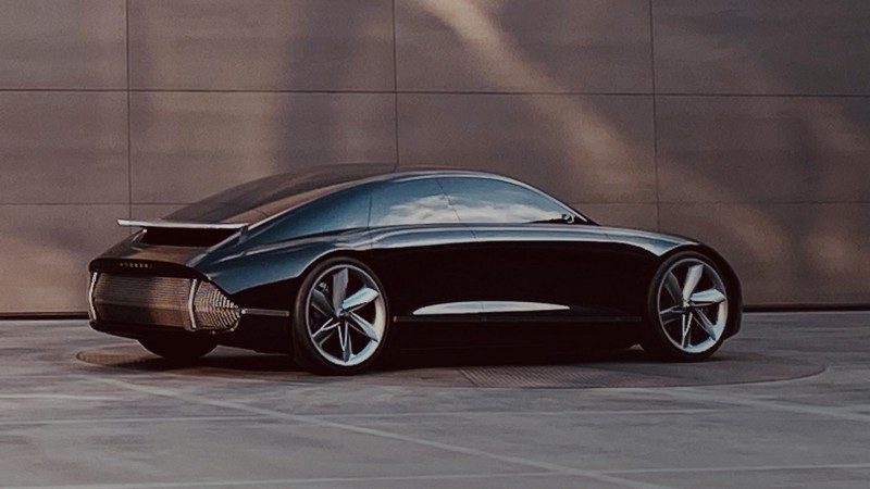 For inspiration for the electric four-door coupe concept, Hyundai’s designers turned to the ’20s and ’30s — when, styling chief Luc Donckerwolke says, “cars were sculptural, they were streamlined, and they were more emotional when people were optimistic about the future”.