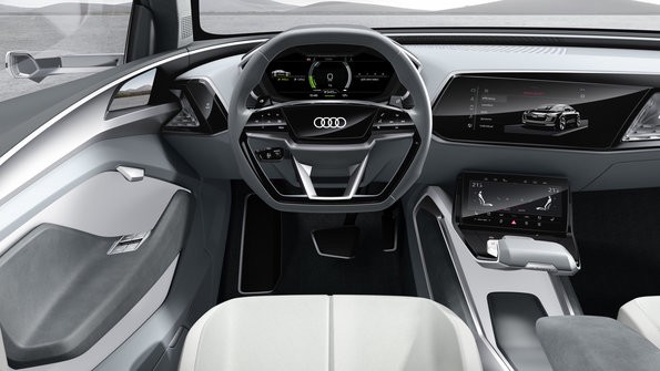 The concept has three electric motors (two power the front wheels and one the fronts) that produce a combined 496 bhp and 590 lb ft of torque. Those outputs are enough to get the car from 0–62 mph in a Tesla-rivaling 4.5 seconds , while the range between charges is also competitive, with Audi claiming that it will exceed 311 miles.