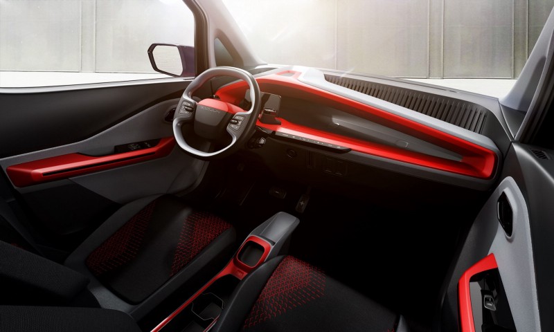 The interior will impresses you, it has great designs . The steering wheels has a thin rim, and the center is in red color that blends with the dashboard colour scheme.There is a small screen in front of the driver and another in middle. Bright red color provides an interesting contrast, while buttons are kept to a minimum. The two pedals are marked “-” and “+” which is nifty in the extreme.