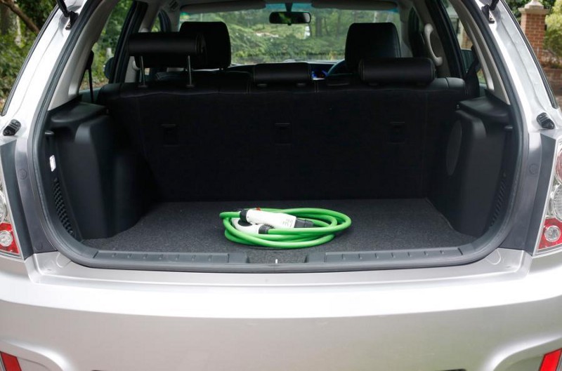 There are no exhaust extractors, no intake manifold or other components you see in an internal combustion engine, though there is a radiator. Instead what you see is the power unit and a couple orange electrical conduits that lead to the batteries under the vehicle.