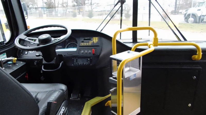 Inverters and controllers are placed at the back on a high shelf in what would normally be the engine compartment, while the A/C compressor is down below. So are two radiators, one against each side of the bus, that look like they could have been lifted out of a front-engine mini compact like a Mitsubishi Mirage. They’re for the battery’s liquid-cooling system, which pumps coolant up to the cells, cycling the fans on as needed.