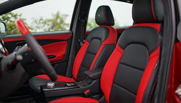 The car interior comes with black red color scheme , a hedge hog on the steering wheel, a 12 inch touch screen, a digital instrument panel and air ventilation . There are also hedgehog logo on the headrests.