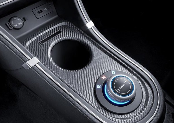 There is just one cup holder for the coffee.Cup holder and knob sit in a plastic-carbon fiber panel.Rear bench is nice too, but it all seems a tad too gray. A lot of Chinese automakers are experimenting with red or orange seats.