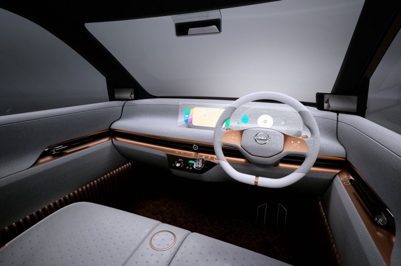 The interior is designed to feel more like a cafe or lounge than the inside of a car, according to Nissan. Designers used light-tone materials to make the interior feel cozier and eliminated as many analog controls as possible. A single panel displays vital information, such as speed and navigation directions, while a holographic display handles other functions. The IMk also integrates Nissan’s “invisible to visible” tech, which is designed to give drivers more information about their surroundings. It can even let drivers “see” through buildings or other obstacles, according to Nissan