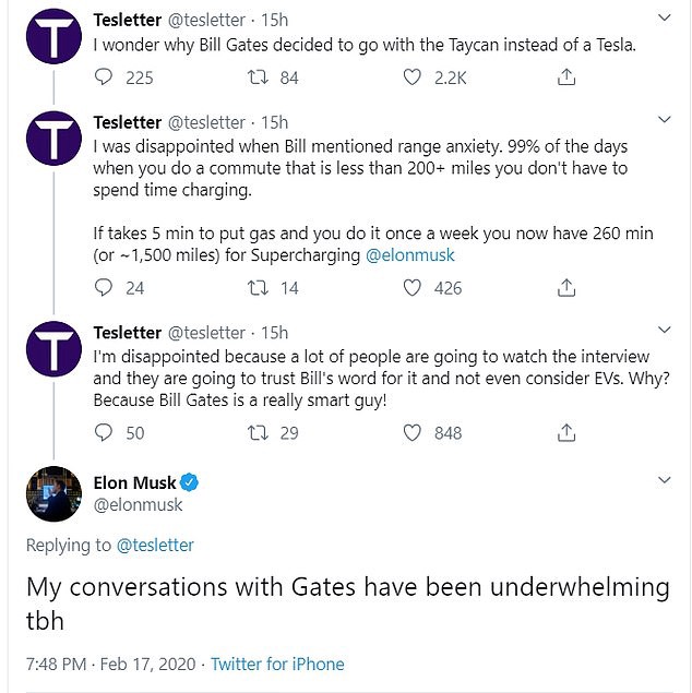 But Gates’ silent implication could mean Tesla is not a cool car for billionaires. Musk answered Gates on Twitter, which he said was ‘underwhelming’ for him to buy Taycan over Model S.