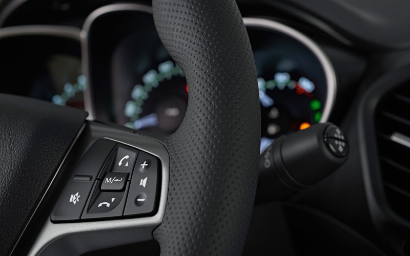 - Steering wheel is fitted with cruise control and multimedia control buttons.