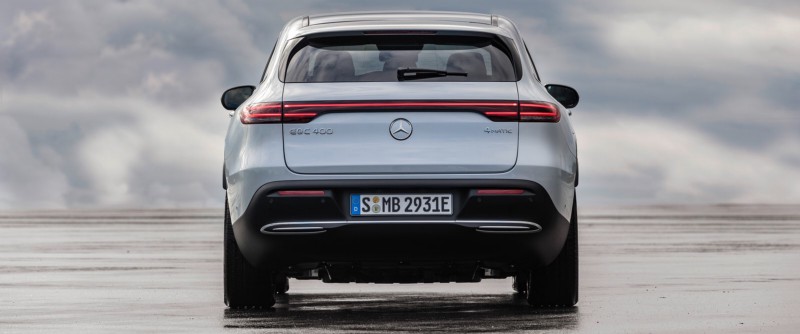 The Mercedes EQC is framed by fiber optical lighting that surrounds the grille , connecting the left and right headlights that flows into deep front bumper. The headlights are pretty and have blue LED. EQC has a classic look with an SUV roof line and glass area that runs down to the rear window. The charging port is found above the rear wheel at the right hand side and the large alloy wheels.However, Mercedes has not fitted the roof of EQC with roof rails compared to other SUV.The rear spoiler does the same it runs down the side of rear windscreen. You will not fail to notice the chrome strip that runs the length of the rear bumper and frames and exhaust pipes.