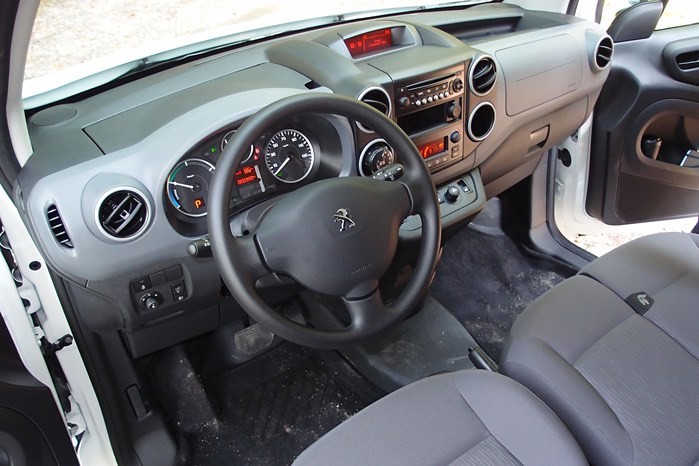 The instrument cluster in the Partner Electric is largely identical to that of the diesel van. The main difference is that the rev counter has been replaced by a power indicator, while the two smaller gauges between it and the speedometer show battery capacity and how much power the electric motor is supplying when you use the accelerator.