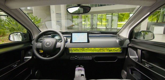 This feature turns the car into a mobile power station. For air filtering the Sion integrates a special moss into the dashboard filtering up to 20% of dust particles and regulating humidity inside the car.