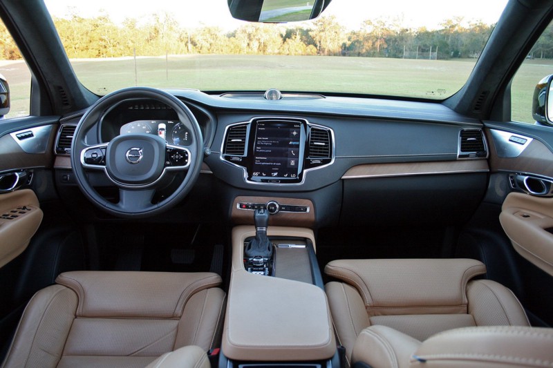 Leg and headroom are excellent in all three rows and third-row passengers shouldn’t have too much trouble getting into their seats thanks to big doors and sliding middle-row seats. There are plenty of cubbies scattered throughout the cabin, with even third-row passengers getting their own storage bins.Volvo’s has a beautiful polished aluminium and fine leather. They fold out from under the center armrest, and the tabletop extends out over your lap. Elegant as they are, though, they require a specific deployment and stowage procedure. The armrest will hit the tabletop if you don’t extend it first, so every time you deploy the table you must extend it before you close the armrest and do the reverse when you put it away. It’s a minor inconvenience and hopefully one Volvo can engineer around in the future.